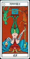 E, inoltre, visto il mancato controllo delle energie mentali, pratiche di magia nera, stregoneria, maledizioni. La carta denota la schiavitù dello spirito rispetto alla materia, la non capacità di capire, accettare o superare i conflitti interiori tra la spiritualità e la fisicità. Energia carente, grosse disarmonie, blocco sia a livello mentale che emotivo o fisico. Persona ostacolante e negativa. Eccessi di ogni tipo, slealtà, falsità, inganno.